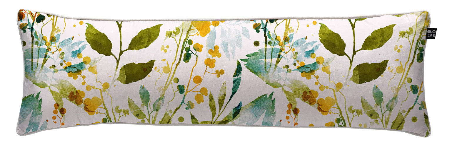3. Cojín 70 x 35 cm: Diseño por ambos lados, con cordón perimetral, cierre invisible, relleno algodón sintético removible.