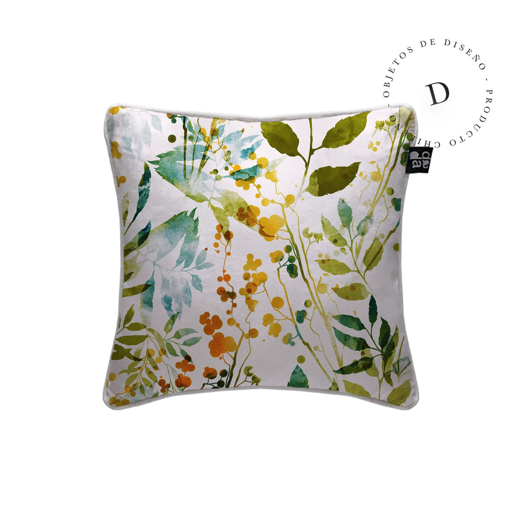 1. Cojín 45 x 45 cm: Diseño por ambos lados, con cordón perimetral, cierre invisible, relleno algodón sintético removible.