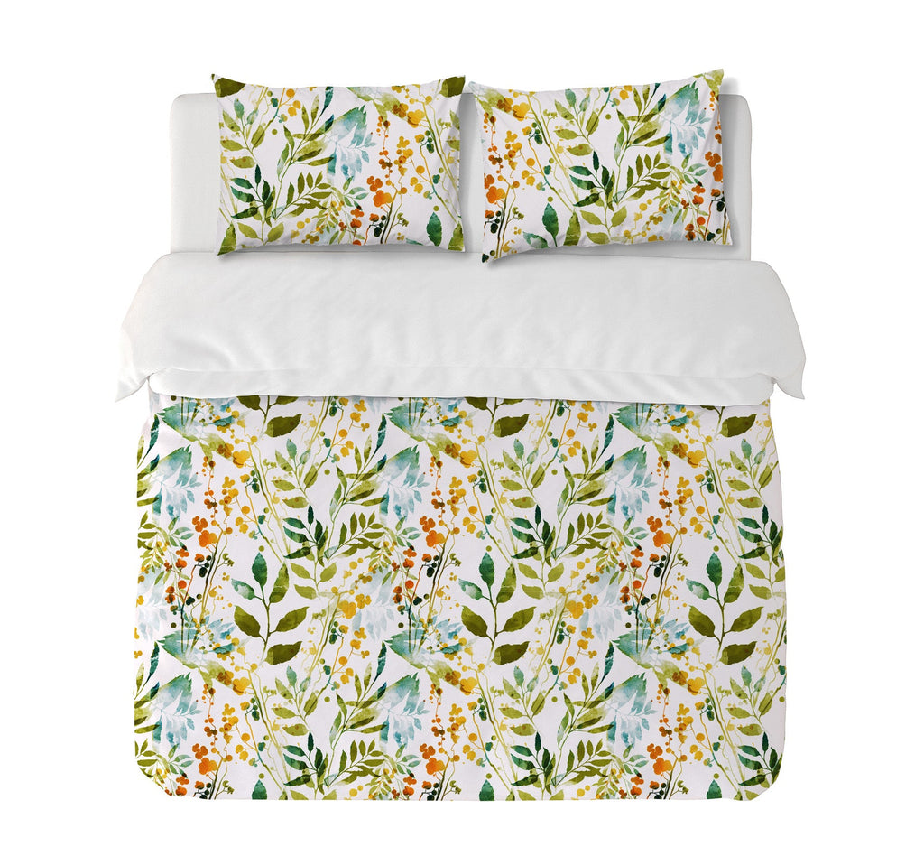 10. Funda de plumón Queen 240 x 245 cm: Funda plumón, diseño por una cara, reverso liso con cierre invisible en la parte inferior + 2 fundas de almohadas 70 x 50 cm con cierre invisible. No incluye rellenos.