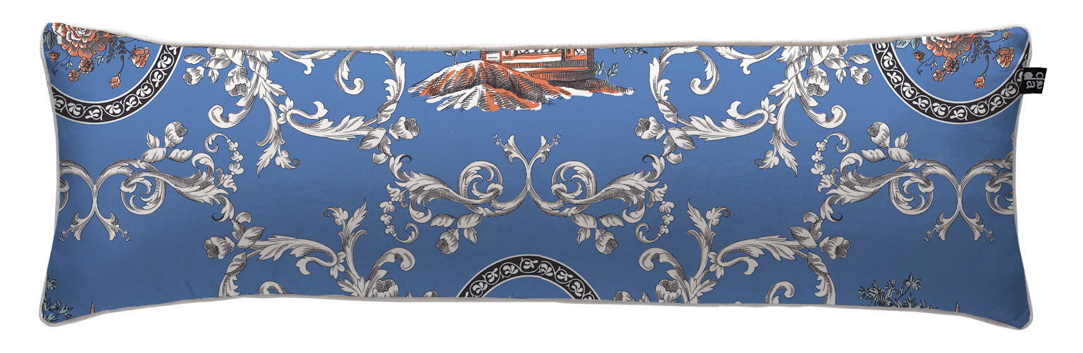 5. Cojín 120 x 35 cm: Diseño por ambos lados, con cordón perimetral, cierre invisible, relleno algodón sintético removible.