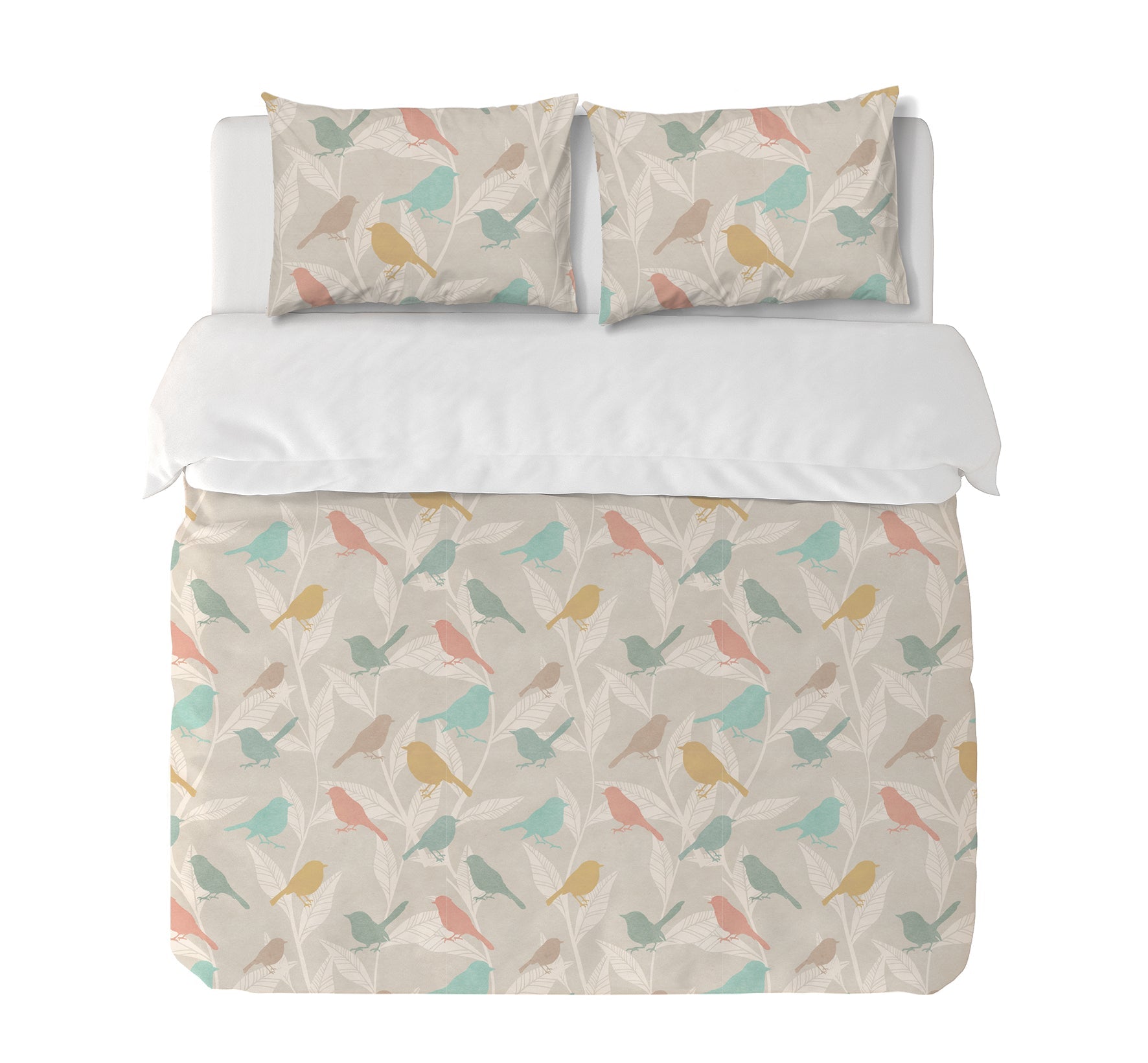10. Funda de plumón Queen 240 x 245 cm: Funda plumón, diseño por una cara, reverso liso con cierre invisible en la parte inferior + 2 fundas de almohadas 70 x 50 cm con cierre invisible. No incluye rellenos.