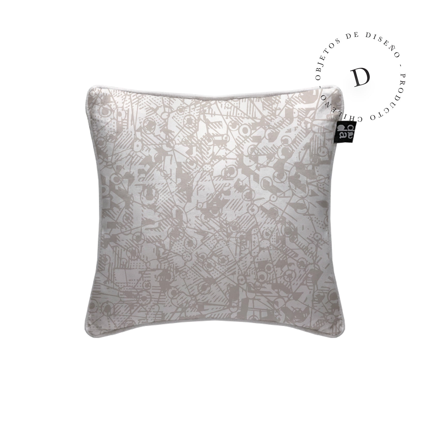 1. Cojín 45 x 45 cm: Diseño por ambos lados, con cordón perimetral, cierre invisible, relleno algodón sintético removible.