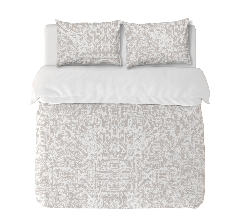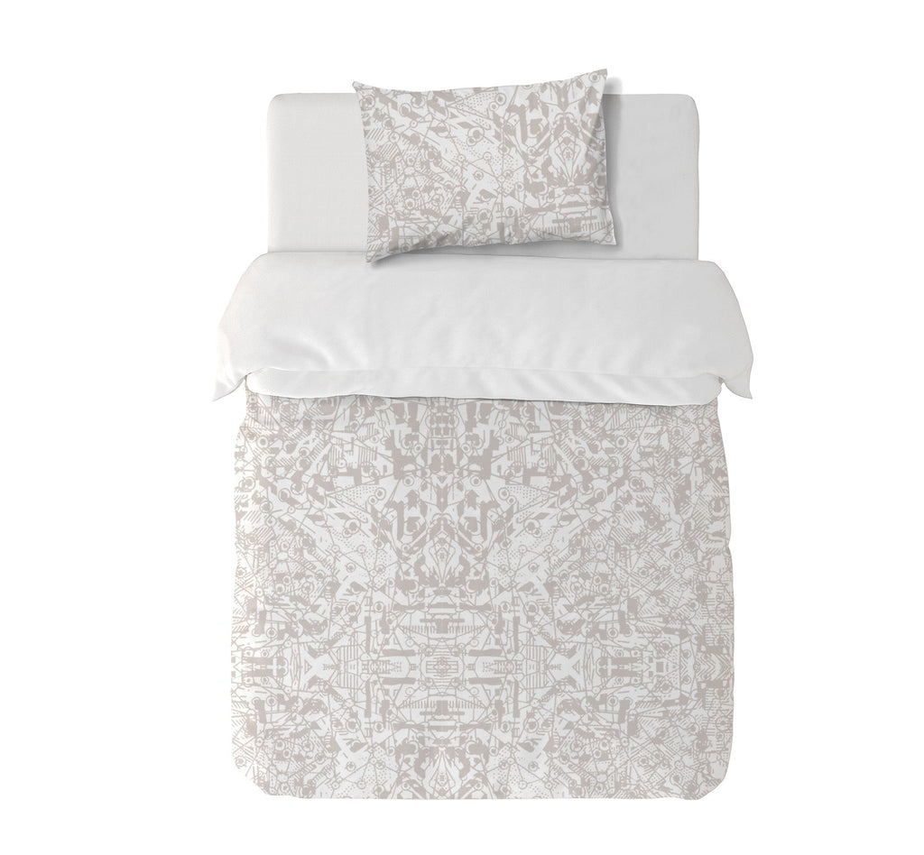 10. Funda de plumón Queen 240 x 245 cm: Funda plumón, diseño por una cara, reverso liso con cierre invisible en la parte inferior + 2 fundas de almohadas 70 x 50 cm con cierre invisible. No incluye rellenos.