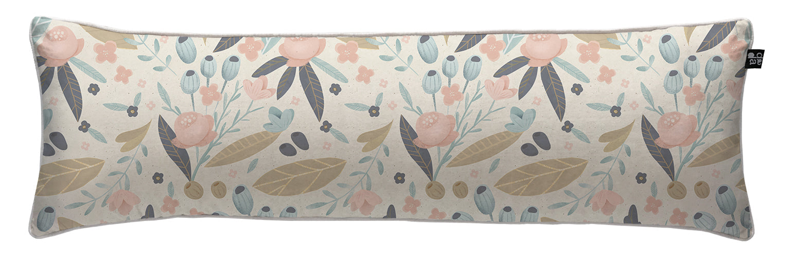 5. Cojín 120 x 35 cm: Diseño por ambos lados, con cordón perimetral, cierre invisible, relleno algodón sintético removible.