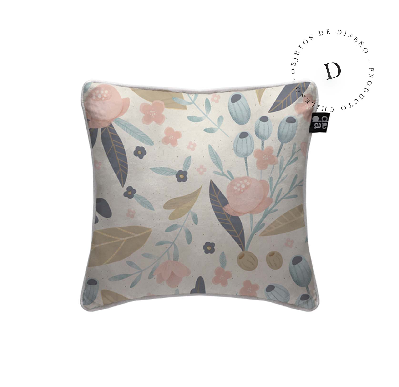 1. Cojín 45 x 45 cm: Diseño por ambos lados, con cordón perimetral, cierre invisible, relleno algodón sintético removible.