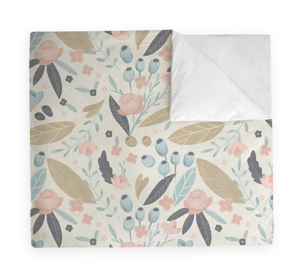 7. Manta / Piecera 210 x 140 relleno algodón sintético removible: diseño por una cara, reverso liso, cierre invisible. No incluye relleno (se vende por separado)
