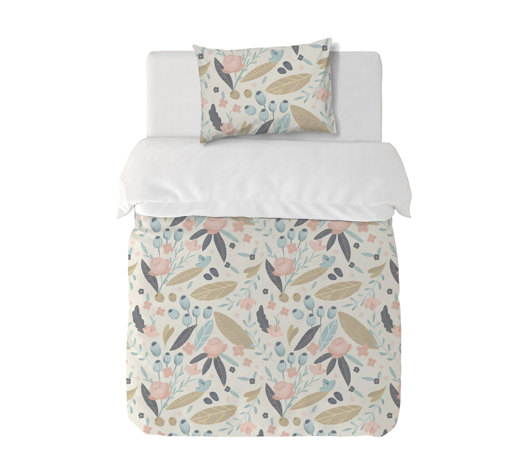 8. Funda de plumón 1 Plaza 150 x 240 cm: Funda plumón, diseño por una cara, reverso liso con cierre invisible en la parte inferior + 1 funda de almohada 70 x 50 cm con cierre invisible. No incluye rellenos.