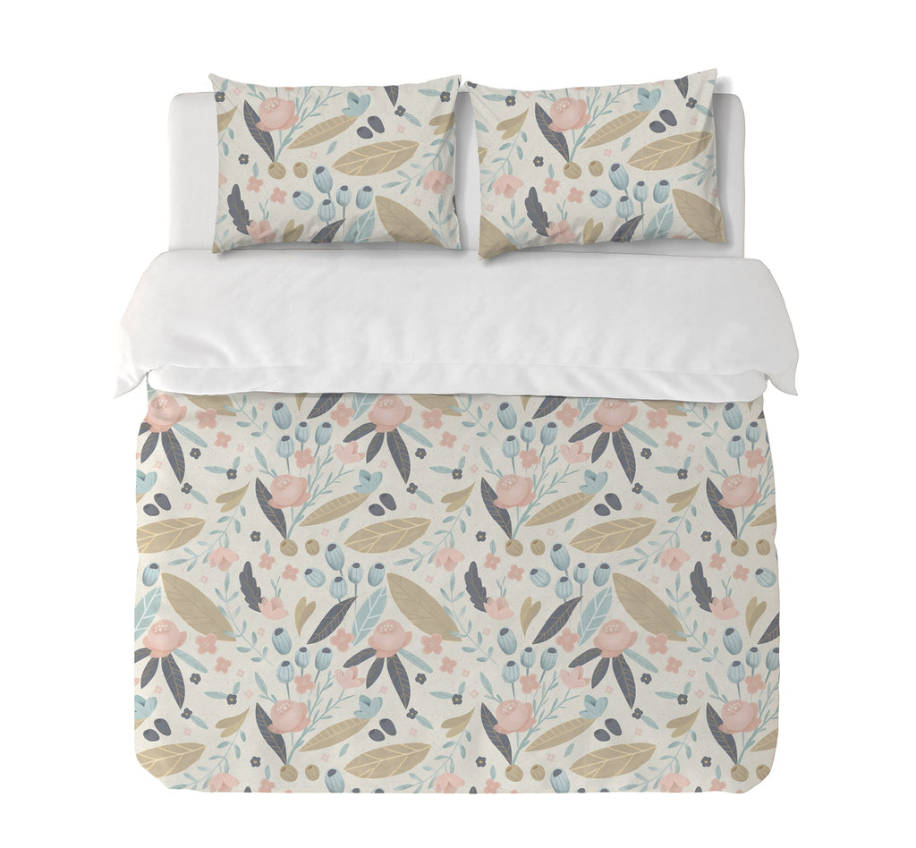 10. Funda de plumón Queen 240 x 245 cm: Funda plumón, diseño por una cara, reverso liso con cierre invisible en la parte inferior + 2 fundas de almohadas 70 x 50 cm con cierre invisible. No incluye rellenos.