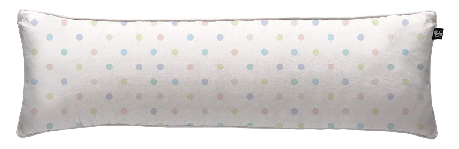 5. Cojín 120 x 35 cm: Diseño por ambos lados, con cordón perimetral, cierre invisible, relleno algodón sintético removible.