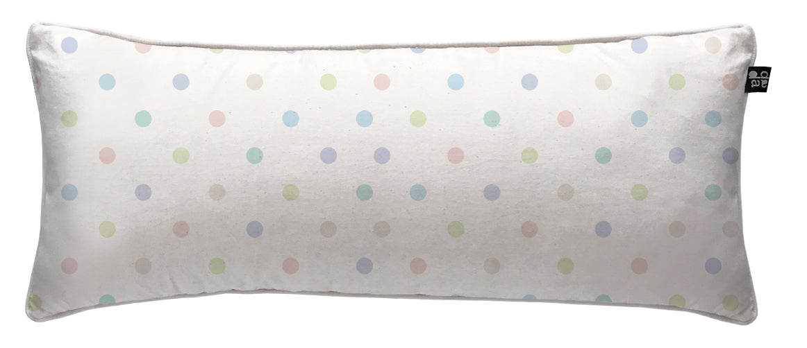 3. Cojín 70 x 35 cm: Diseño por ambos lados, con cordón perimetral, cierre invisible, relleno algodón sintético removible.