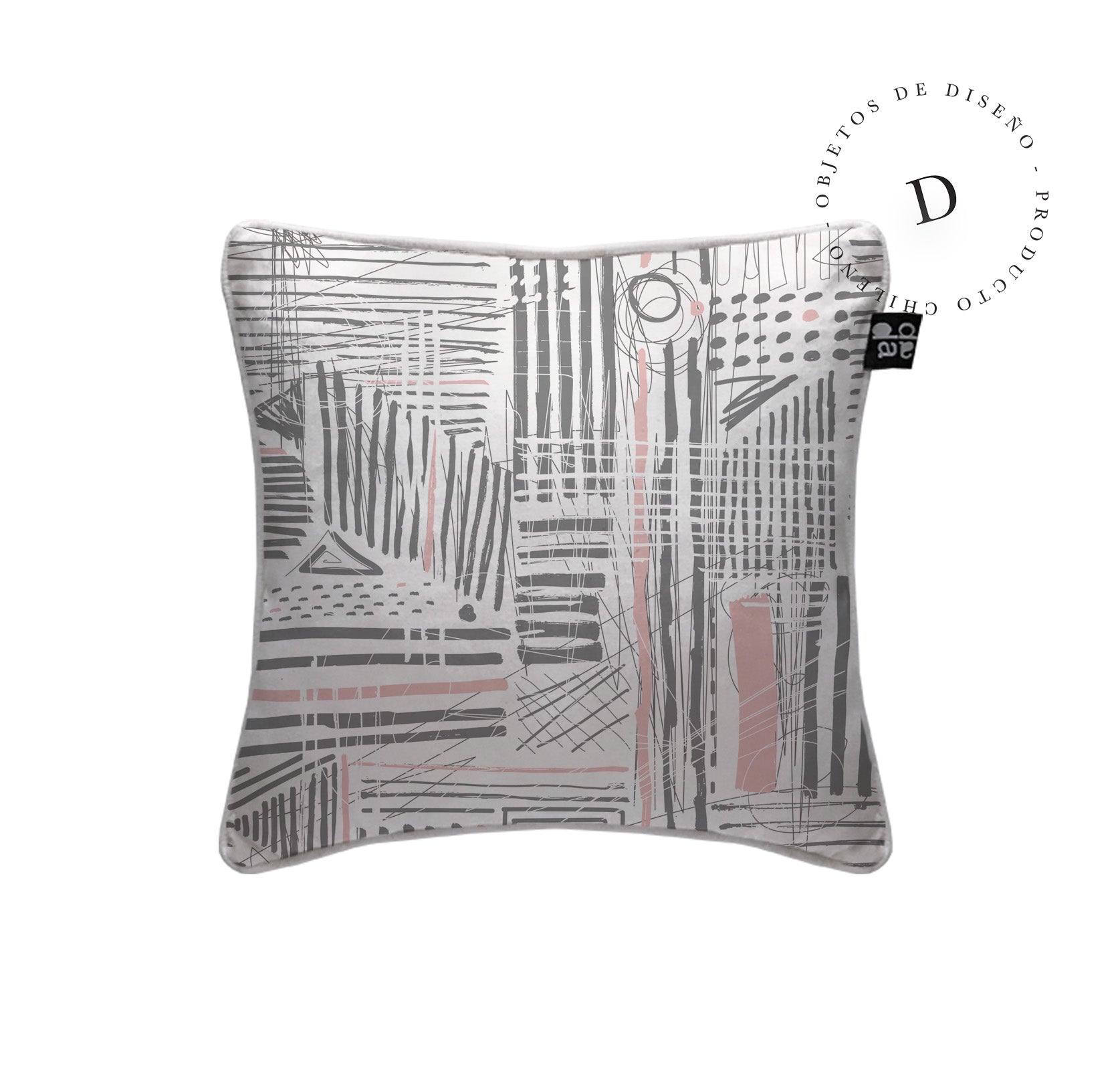 1. Cojín 45 x 45 cm: Diseño por ambos lados, con cordón perimetral, cierre invisible, relleno algodón sintético removible.