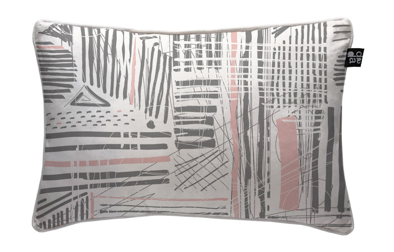 2. Cojín 60 x 40 cm: Diseño por ambos lados, con cordón perimetral, cierre invisible, relleno algodón sintético removible.