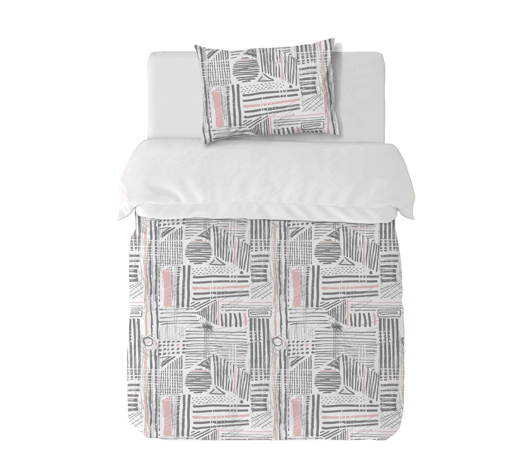 8. Funda de plumón 1 Plaza 150 x 240 cm: Funda plumón, diseño por una cara, reverso liso con cierre invisible en la parte inferior + 1 funda de almohada 70 x 50 cm con cierre invisible. No incluye rellenos.