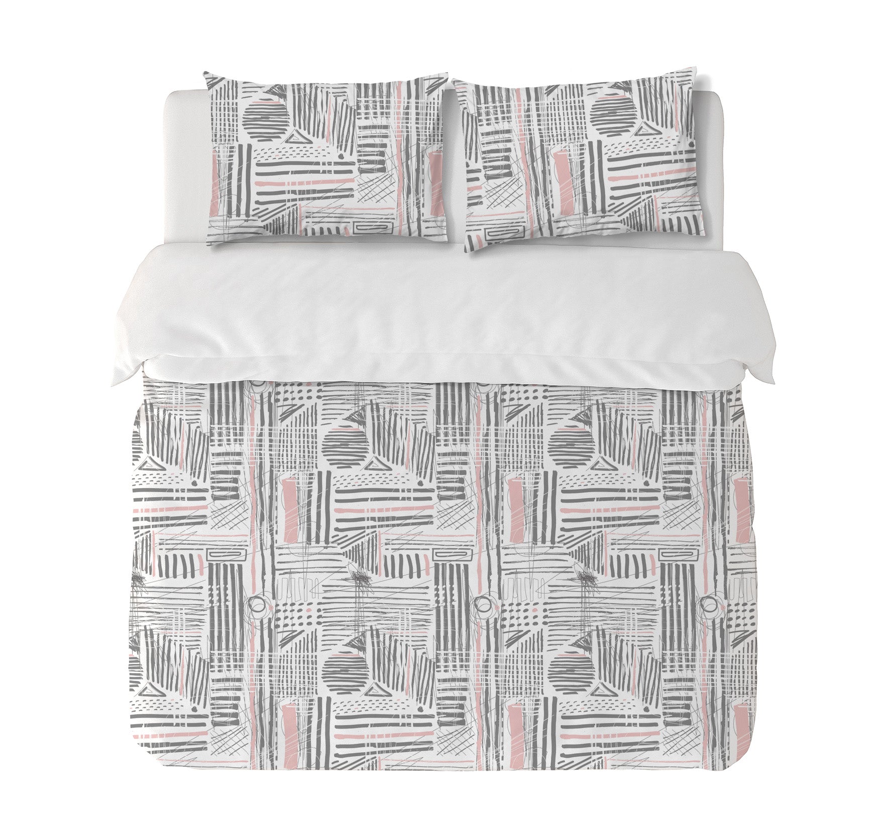 11. Funda de plumón King 270 x 245 cm: Funda plumón, diseño por una cara, reverso liso con cierre invisible en la parte inferior + 2 fundas de almohadas 90 x 50 cm con cierre invisible. No incluye rellenos.