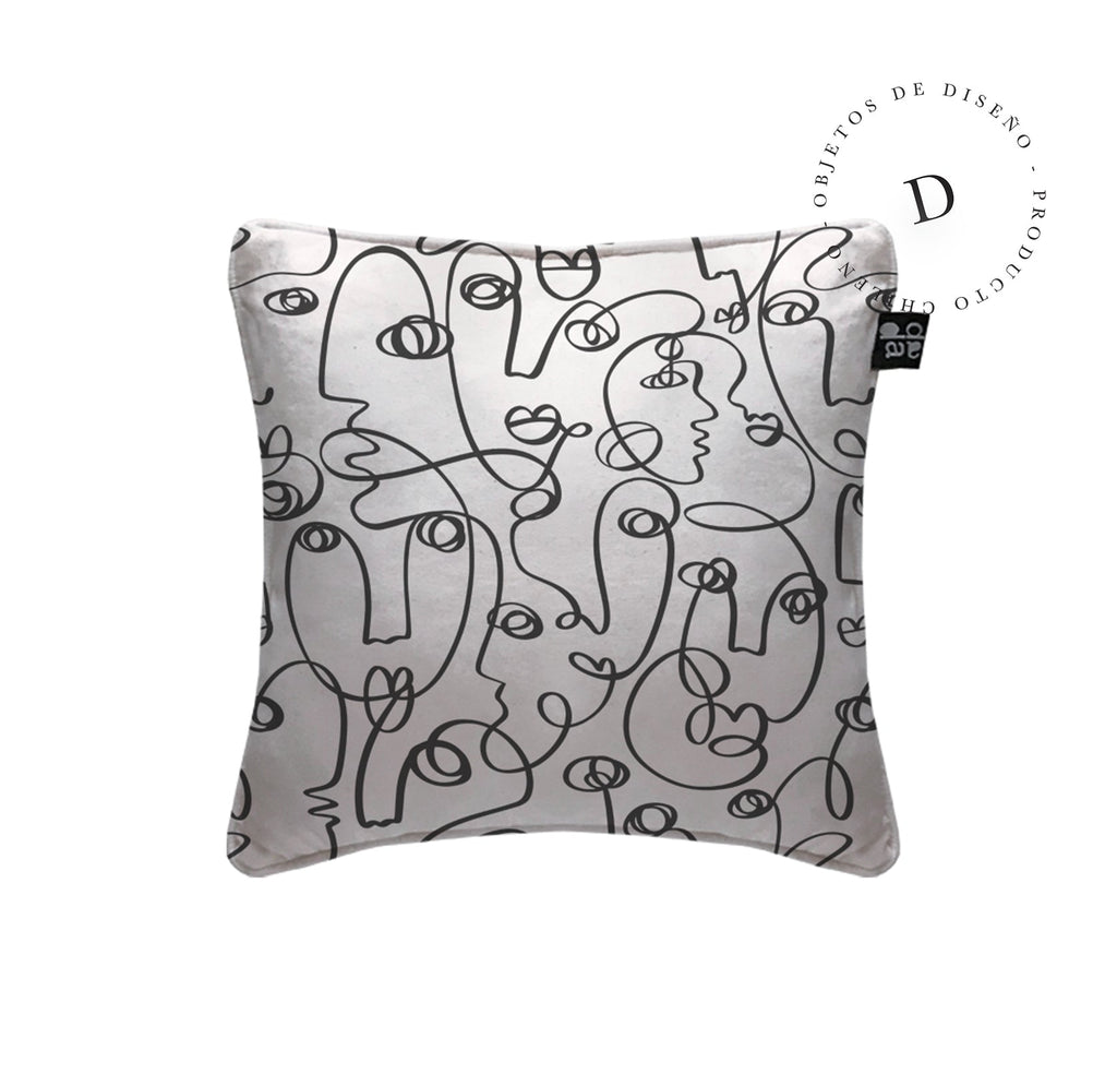 1. Cojín 45 x 45 cm: Diseño por ambos lados, con cordón perimetral, cierre invisible, relleno algodón sintético removible.
