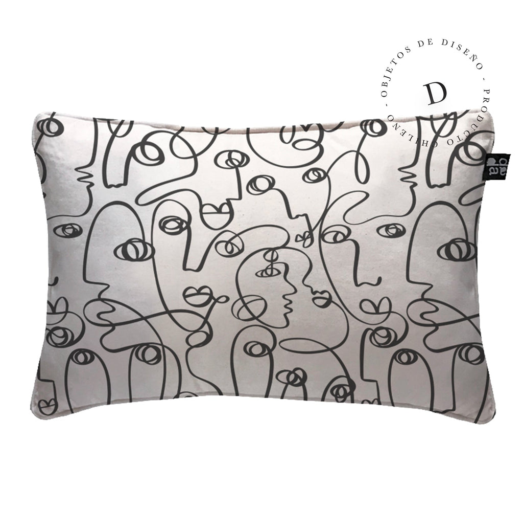 2. Cojín 60 x 40 cm: Diseño por ambos lados, con cordón perimetral, cierre invisible, relleno algodón sintético removible.