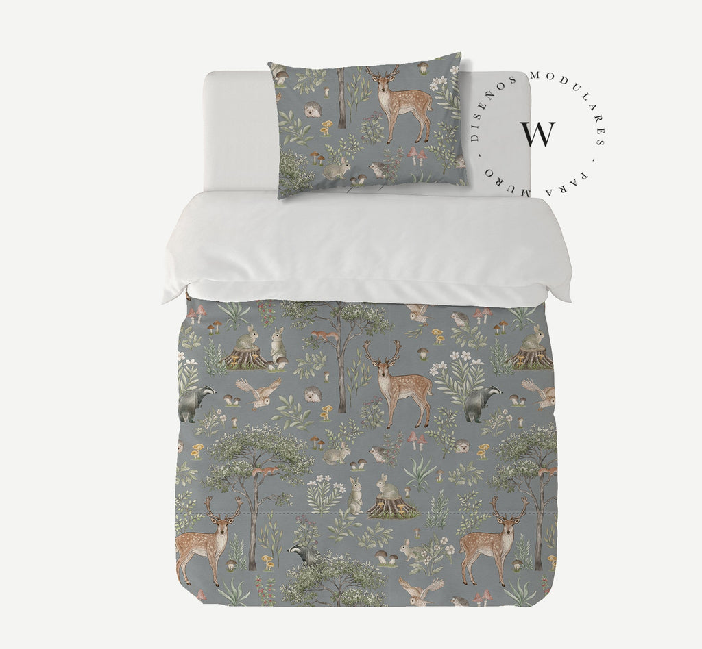 9. Funda de plumón 1 1/2 Plaza 180 x 240 cm: Funda plumón, diseño por una cara, reverso liso con cierre invisible en la parte inferior + 1 funda de almohada 70 x 50 cm con cierre invisible. No incluye rellenos.