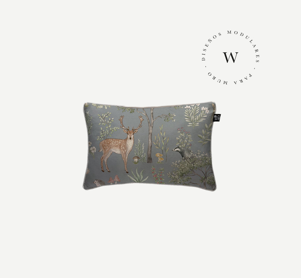 2. Cojín 60 x 40 cm: Diseño por ambos lados, con cordón perimetral, cierre invisible, relleno algodón sintético removible.