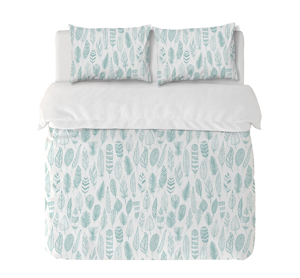 10. Funda de plumón Queen 240 x 245 cm: Funda plumón, diseño por una cara, reverso liso con cierre invisible en la parte inferior + 2 fundas de almohadas 70 x 50 cm con cierre invisible. No incluye rellenos.