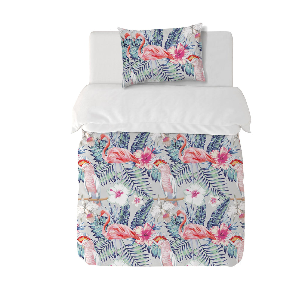 8. Funda de plumón 1 Plaza 150 x 240 cm: Funda plumón, diseño por una cara, reverso liso con cierre invisible en la parte inferior + 1 funda de almohada 70 x 50 cm con cierre invisible. No incluye rellenos.