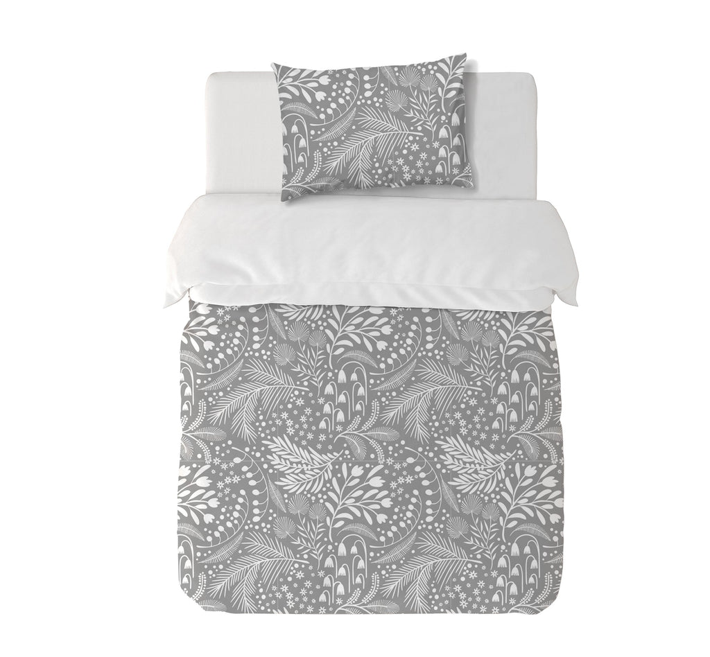 11. Funda de plumón King 270 x 245 cm: Funda plumón, diseño por una cara, reverso liso con cierre invisible en la parte inferior + 2 fundas de almohadas 90 x 50 cm con cierre invisible. No incluye rellenos.