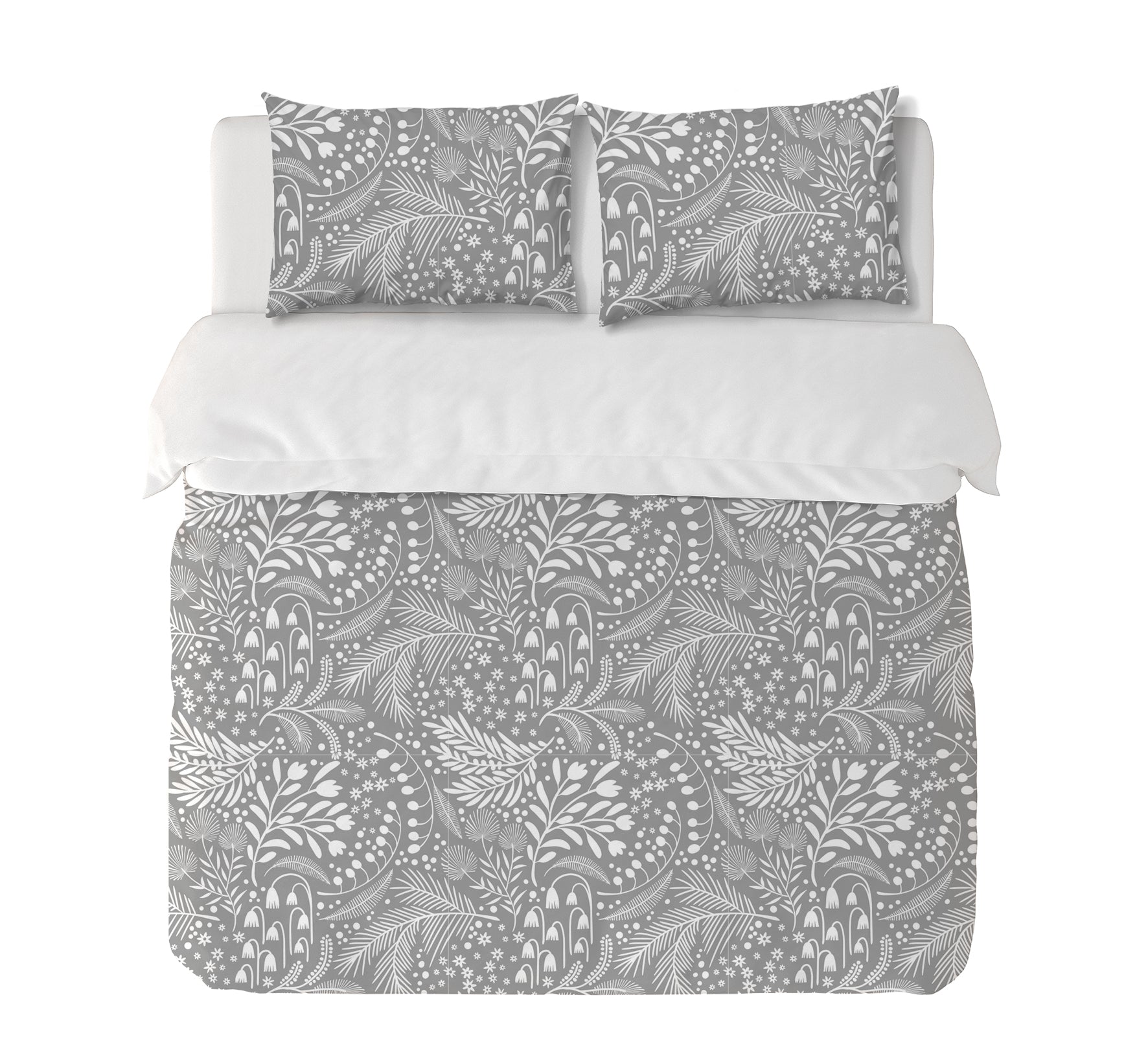 10. Funda de plumón Queen 240 x 245 cm: Funda plumón, diseño por una cara, reverso liso con cierre invisible en la parte inferior + 2 fundas de almohadas 70 x 50 cm con cierre invisible. No incluye rellenos.