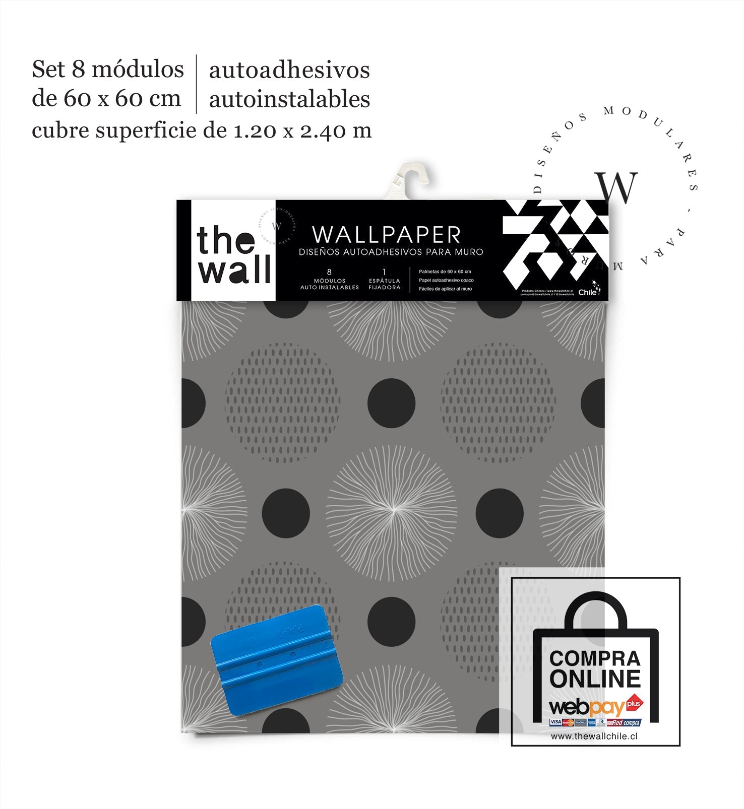 2. Set de Módulos: Módulos adhesivos y auto instalable de 60 x 60 cm que forman un patrón mayor de 1,2 x 2,4 mts (2,44 m2). Con paleta 3M para su perfecta aplicación.