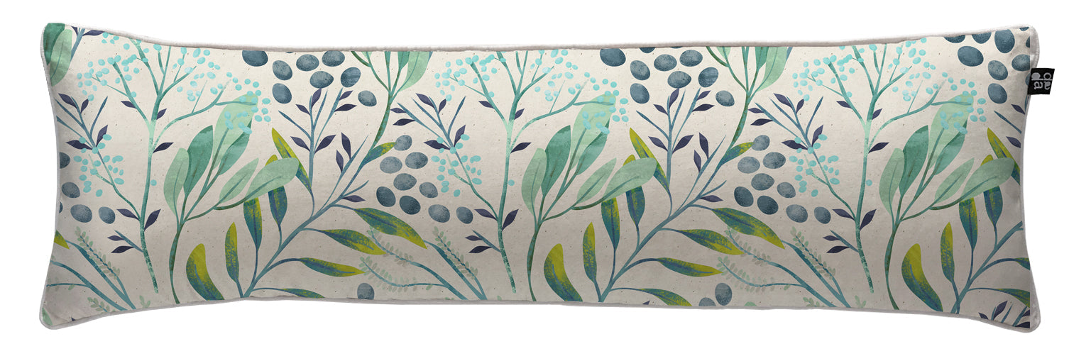 5. Cojín 120 x 35 cm: Diseño por ambos lados, con cordón perimetral, cierre invisible, relleno algodón sintético removible.