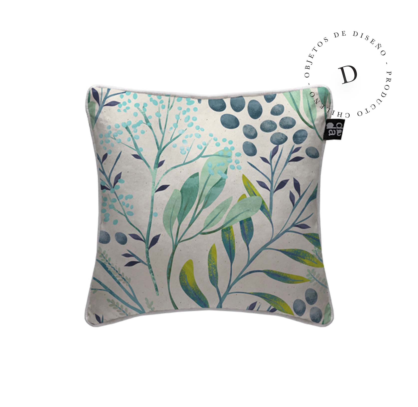 1. Cojín 45 x 45 cm: Diseño por ambos lados, con cordón perimetral, cierre invisible, relleno algodón sintético removible.