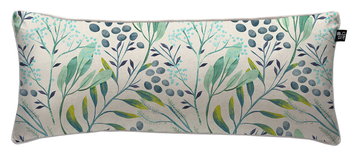 3. Cojín 70 x 35 cm: Diseño por ambos lados, con cordón perimetral, cierre invisible, relleno algodón sintético removible.