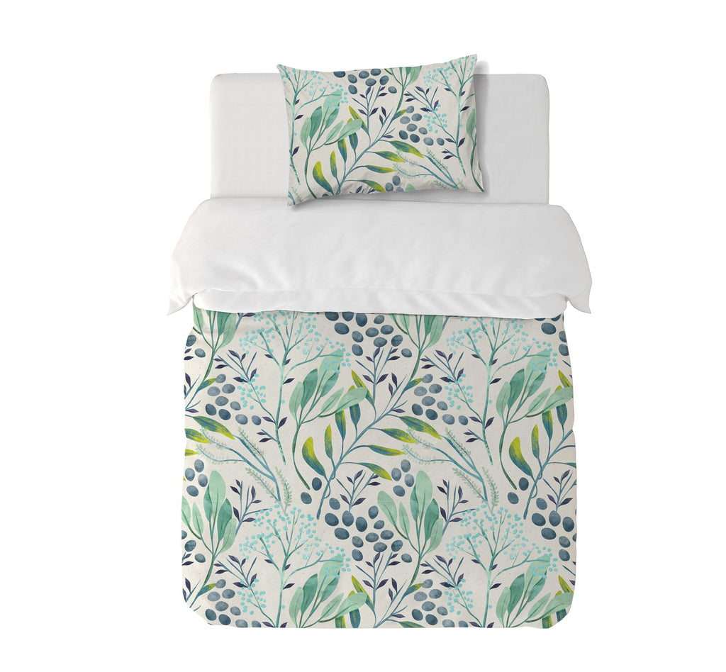 8. Funda de plumón 1 Plaza 150 x 240 cm: Funda plumón, diseño por una cara, reverso liso con cierre invisible en la parte inferior + 1 funda de almohada 70 x 50 cm con cierre invisible. No incluye rellenos.