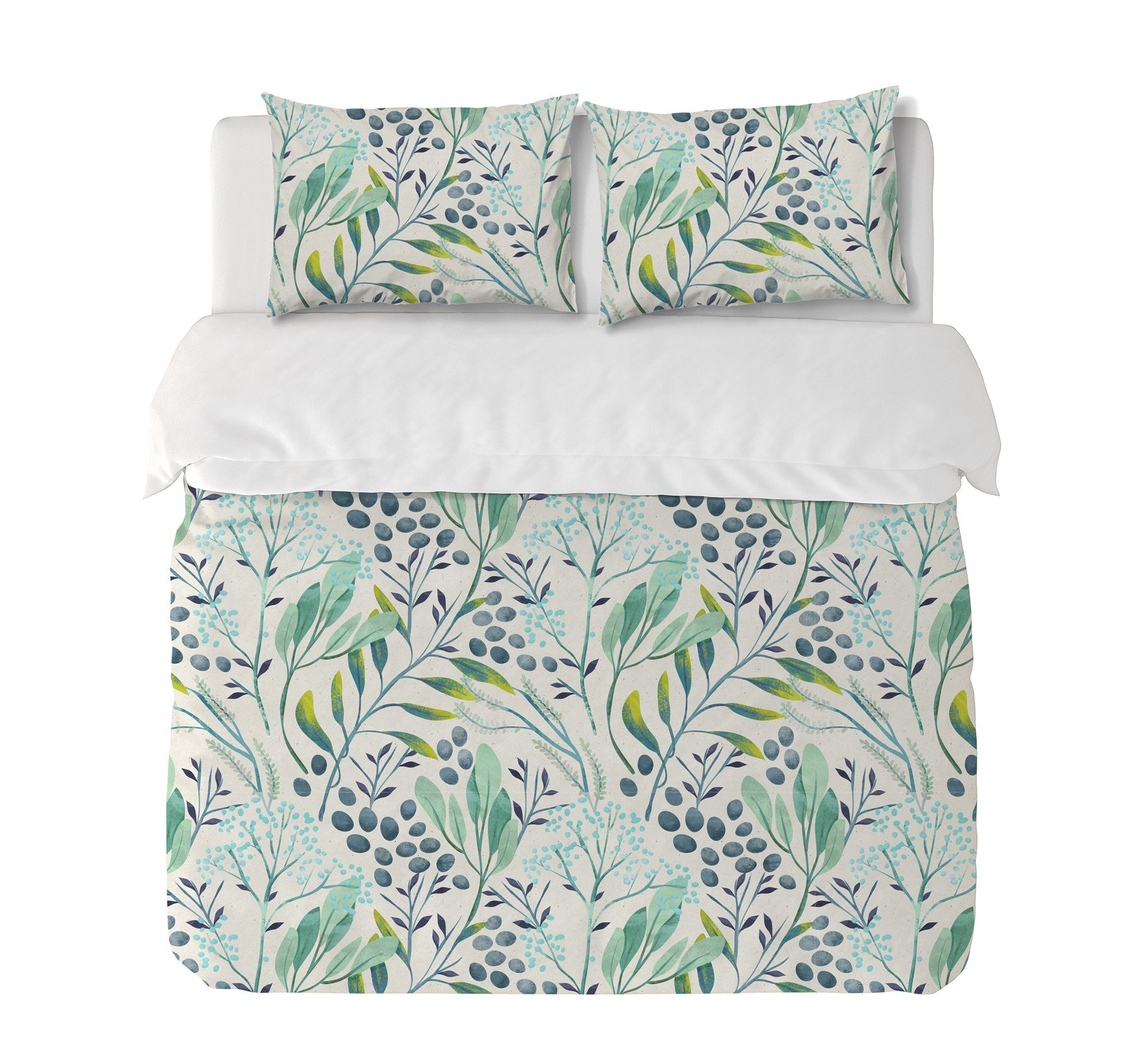 10. Funda de plumón Queen 240 x 245 cm: Funda plumón, diseño por una cara, reverso liso con cierre invisible en la parte inferior + 2 fundas de almohadas 70 x 50 cm con cierre invisible. No incluye rellenos.