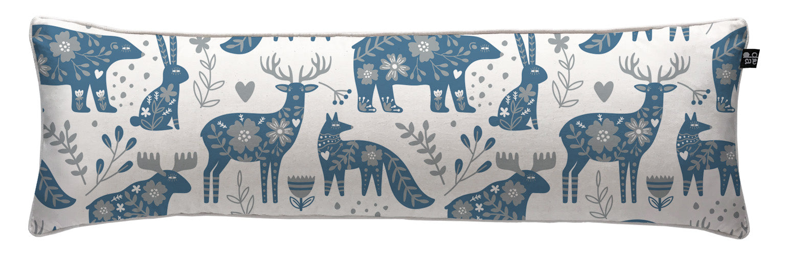 5. Cojín 120 x 35 cm: Diseño por ambos lados, con cordón perimetral, cierre invisible, relleno algodón sintético removible.