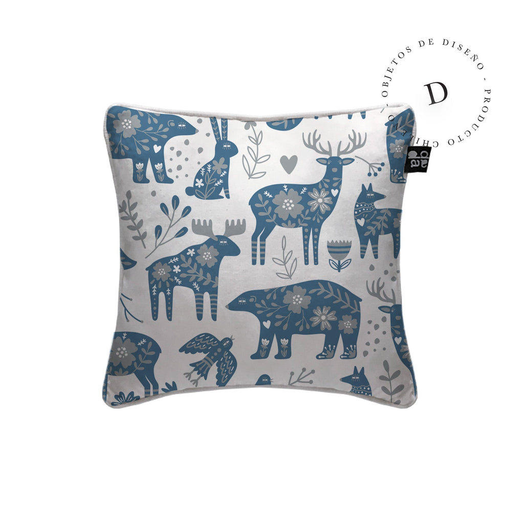 1. Cojín 45 x 45 cm: Diseño por ambos lados, con cordón perimetral, cierre invisible, relleno algodón sintético removible.