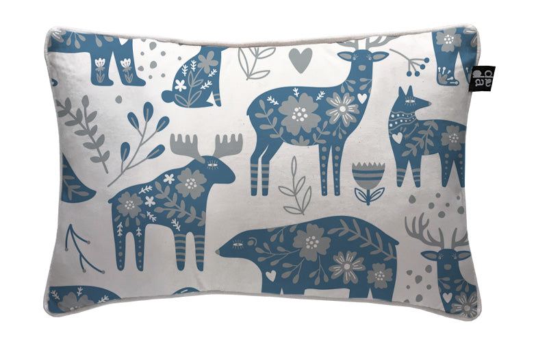 2. Cojín 60 x 40 cm: Diseño por ambos lados, con cordón perimetral, cierre invisible, relleno algodón sintético removible.