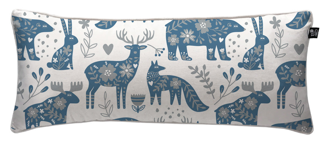 3. Cojín 70 x 35 cm: Diseño por ambos lados, con cordón perimetral, cierre invisible, relleno algodón sintético removible.