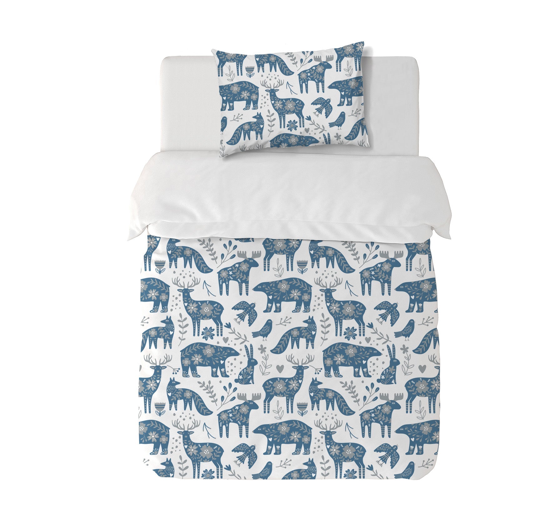 9. Funda de plumón 1 1/2 Plaza 180 x 240 cm: Funda plumón, diseño por una cara, reverso liso con cierre invisible en la parte inferior + 1 funda de almohada 70 x 50 cm con cierre invisible. No incluye rellenos.