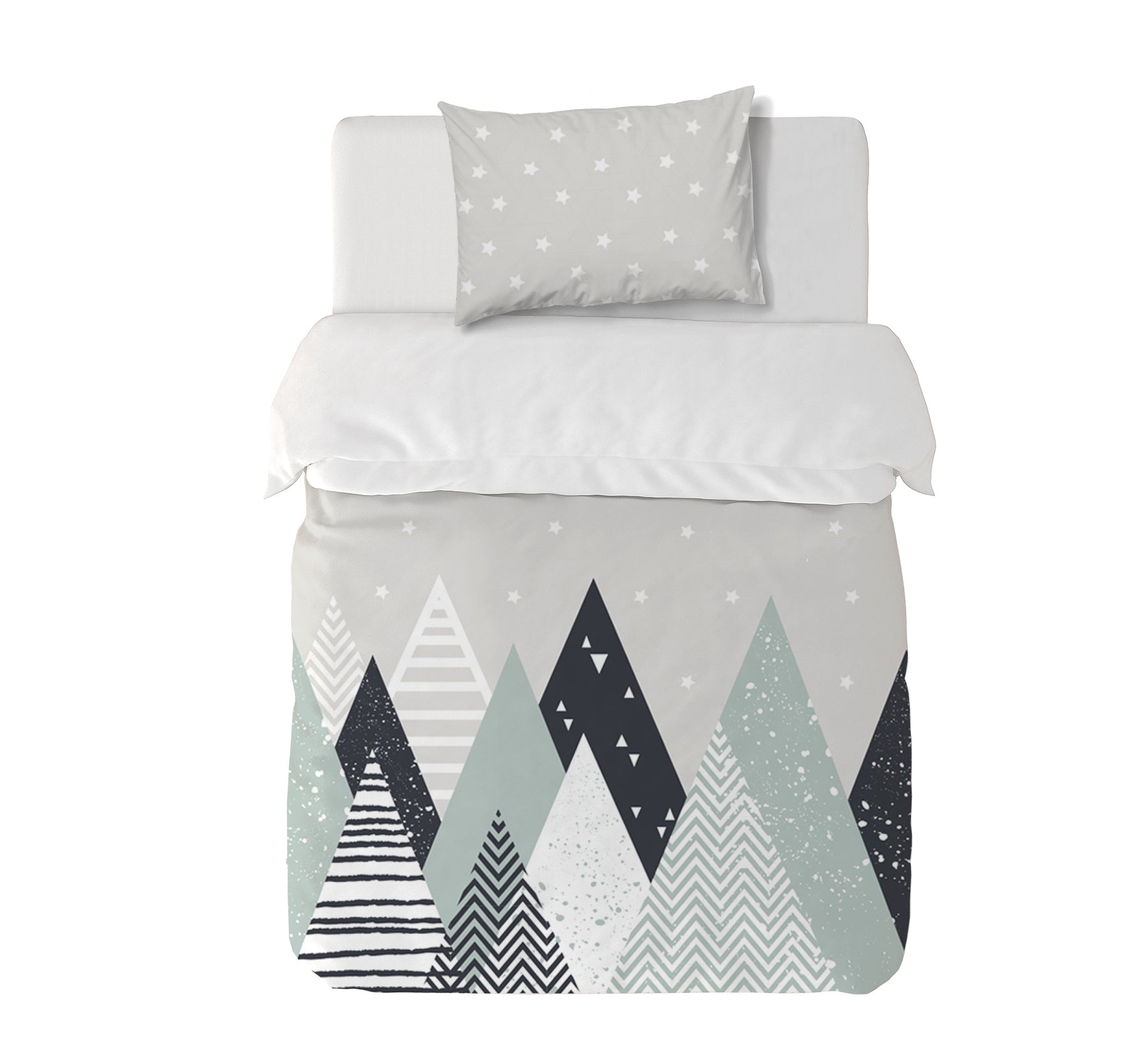 8. Funda de plumón 1 Plaza 150 x 240 cm: Funda plumón, diseño por una cara, reverso liso con cierre invisible en la parte inferior + 1 funda de almohada 70 x 50 cm con cierre invisible. No incluye rellenos.