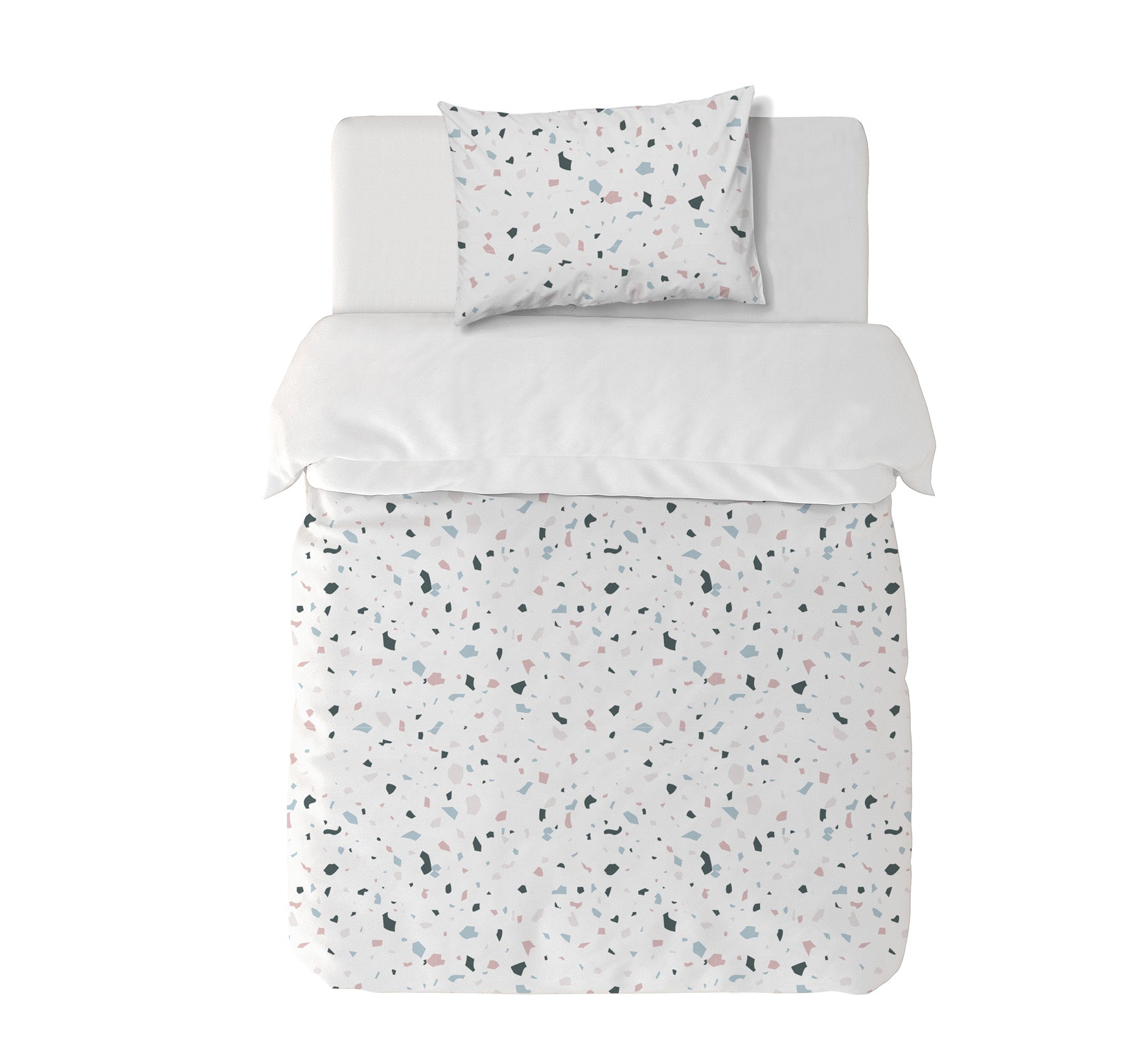 8. Funda de plumón 1 Plaza 150 x 240 cm: Funda plumón, diseño por una cara, reverso liso con cierre invisible en la parte inferior + 1 funda de almohada 70 x 50 cm con cierre invisible. No incluye rellenos.
