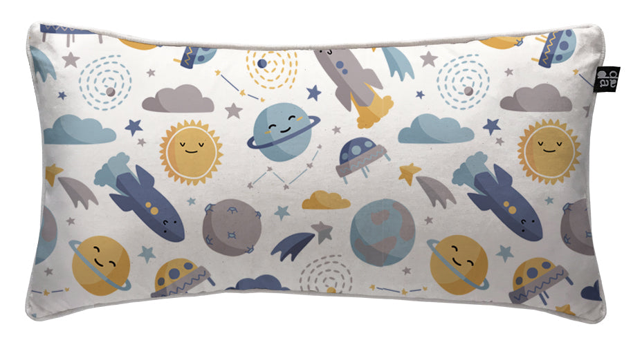 3. Cojín 70 x 35 cm: Diseño por ambos lados, con cordón perimetral, cierre invisible, relleno algodón sintético removible.