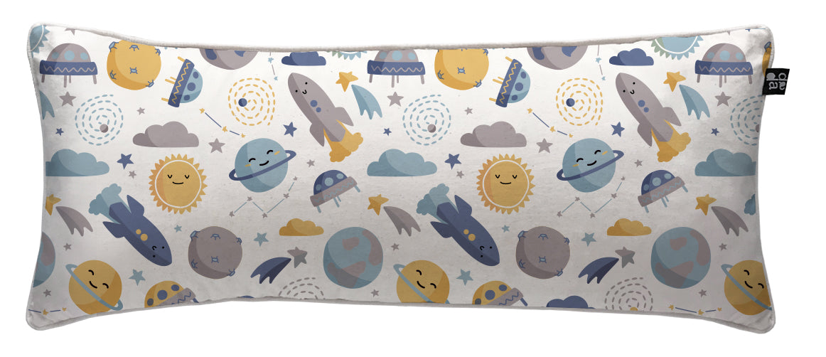 4. Cojín 90 x 35 cm: Diseño por ambos lados, con cordón perimetral, cierre invisible, relleno algodón sintético removible.