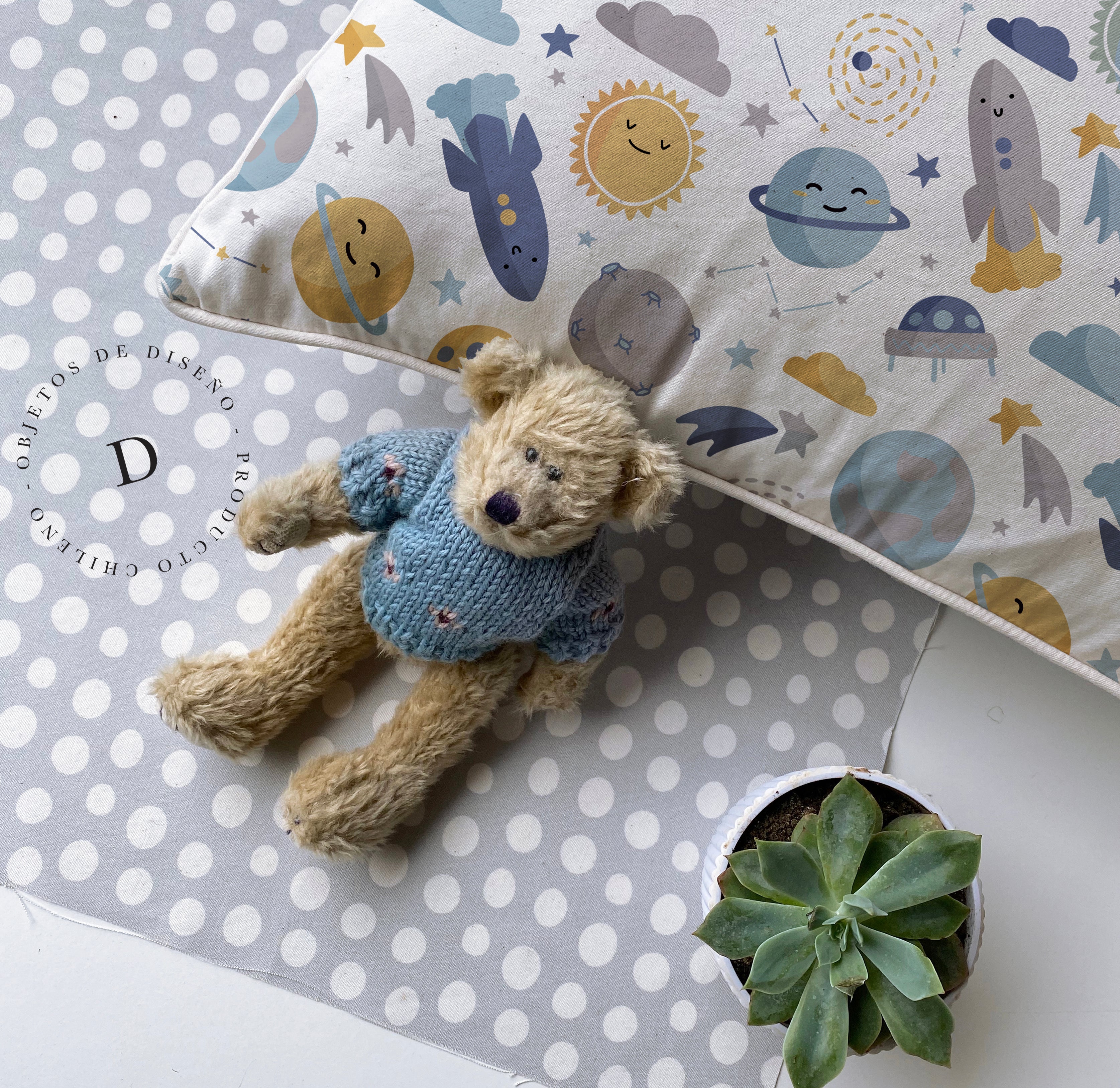 6. Manta / Piecera 180 x 90 relleno algodón sintético removible: diseño por una cara, reverso liso, cierre invisible. No incluye relleno (se vende por separado)