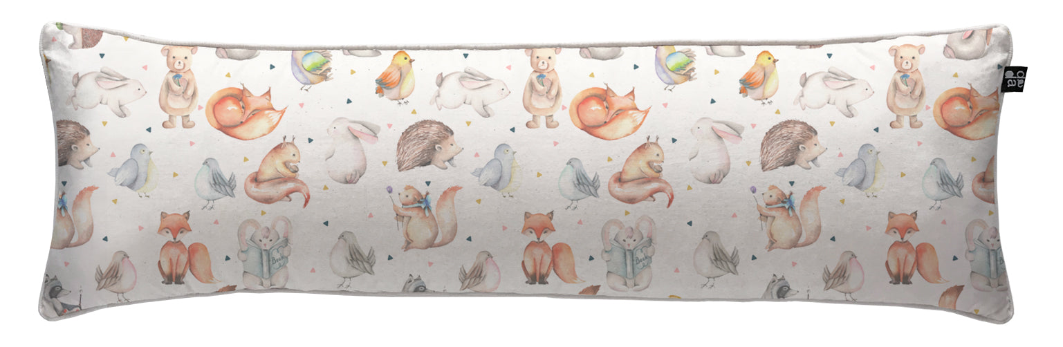 5. Cojín 120 x 35 cm: Diseño por ambos lados, con cordón perimetral, cierre invisible, relleno algodón sintético removible.