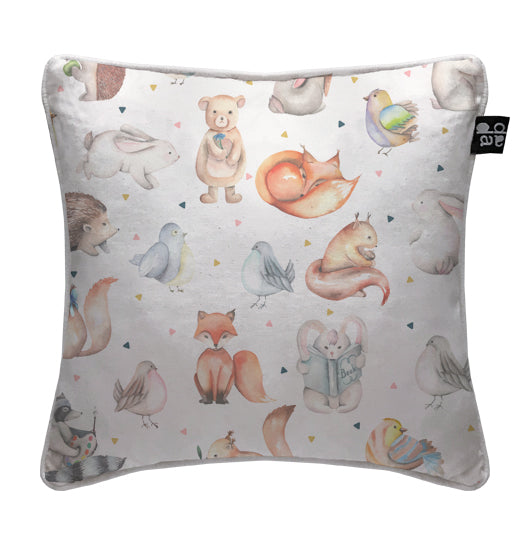 1. Cojín 45 x 45 cm: Diseño por ambos lados, con cordón perimetral, cierre invisible, relleno algodón sintético removible.