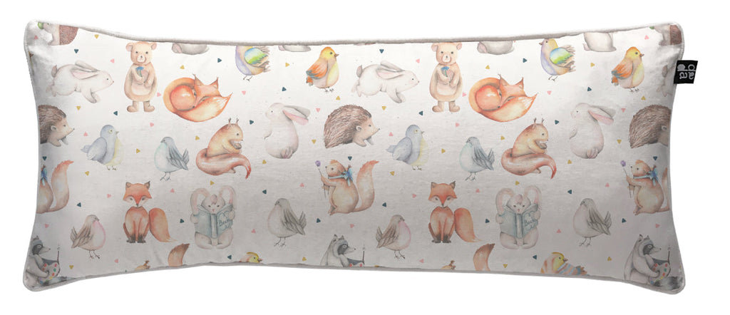 3. Cojín 70 x 35 cm: Diseño por ambos lados, con cordón perimetral, cierre invisible, relleno algodón sintético removible.