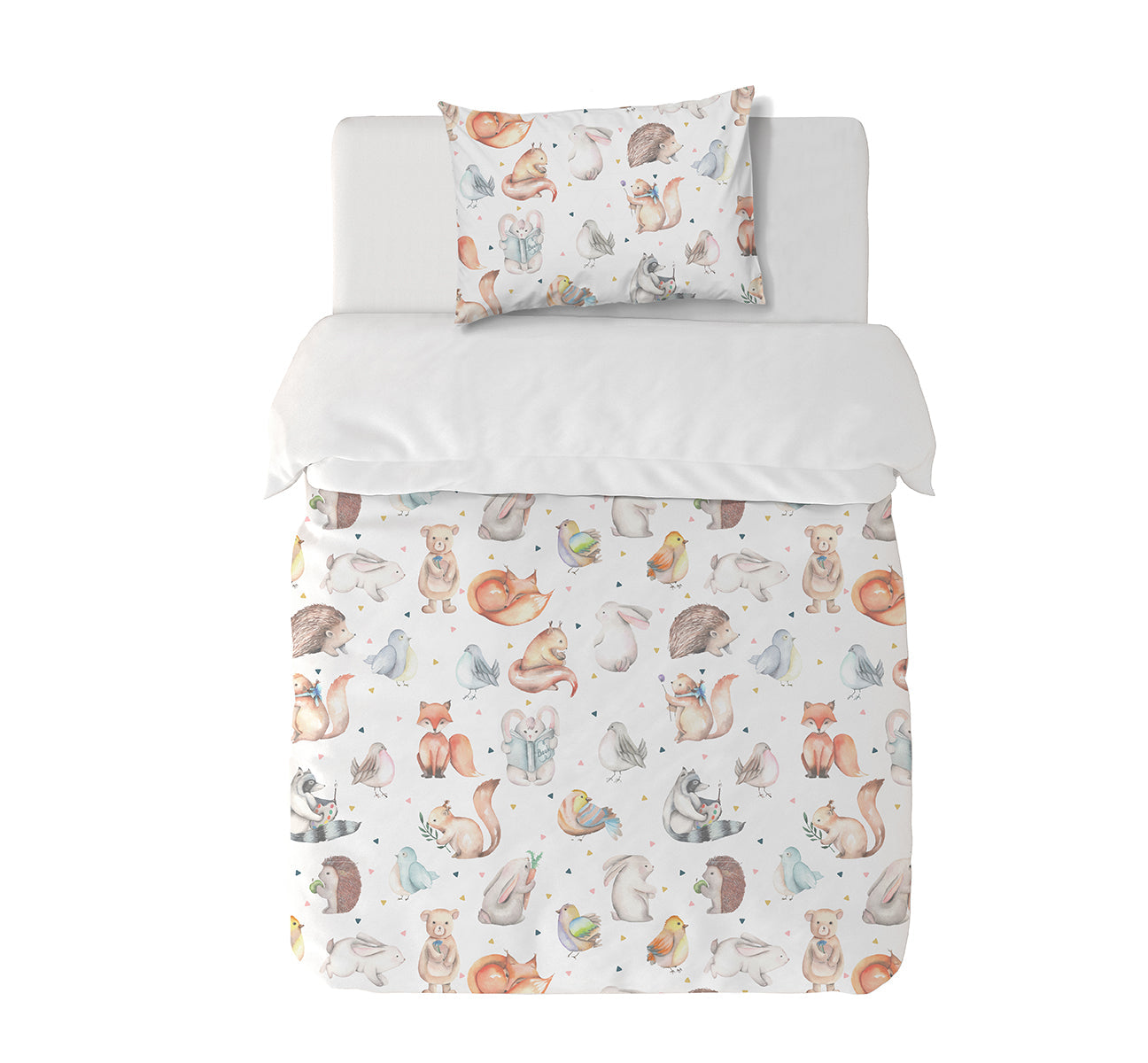 13. Cubrecama Cuna 105 x 145 cm: Cubrecama acolchado, diseño por una cara, reverso liso + 1 funda de almohada 40 x 24 cm con cierre invisible.