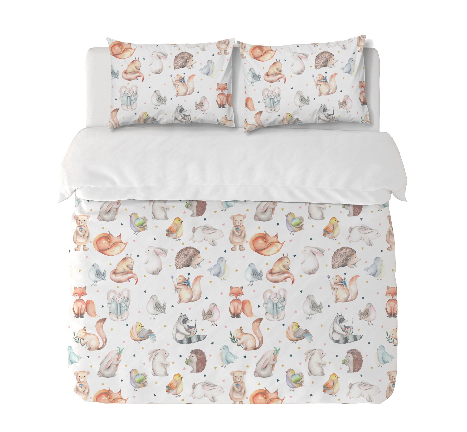 11. Funda de plumón King 270 x 245 cm: Funda plumón, diseño por una cara, reverso liso con cierre invisible en la parte inferior + 2 fundas de almohadas 90 x 50 cm con cierre invisible. No incluye rellenos.