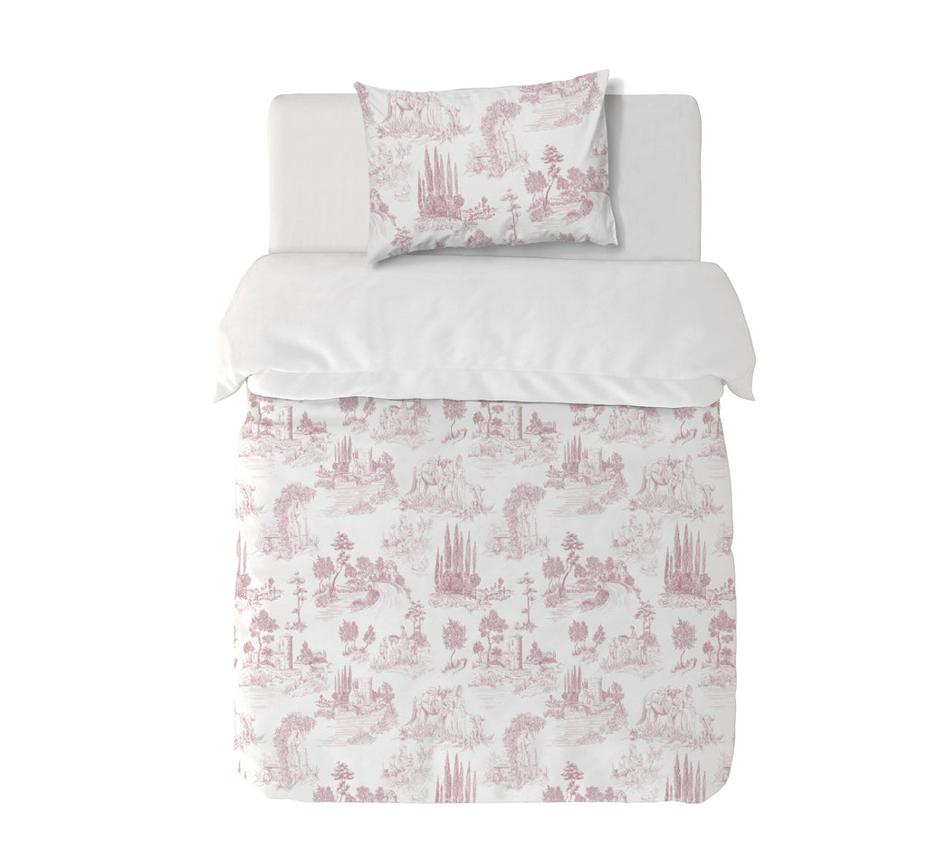 8. Funda de plumón 1 Plaza 150 x 240 cm: Funda plumón, diseño por una cara, reverso liso con cierre invisible en la parte inferior + 1 funda de almohada 70 x 50 cm con cierre invisible. No incluye rellenos.