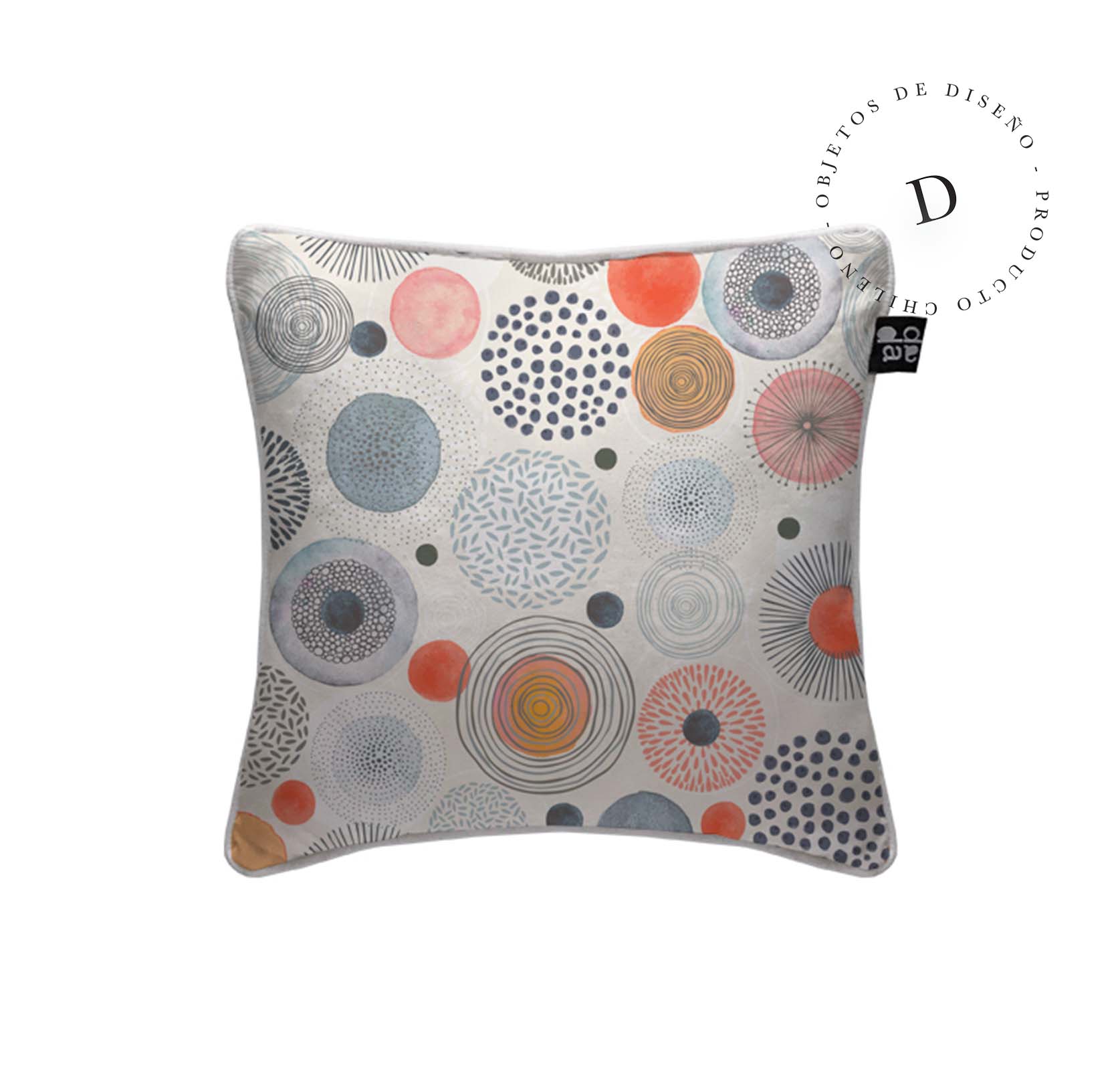 1. Cojín 45 x 45 cm: Diseño por ambos lados, con cordón perimetral, cierre invisible, relleno algodón sintético removible.