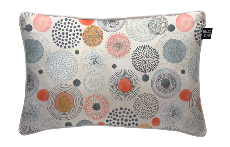 2. Cojín 60 x 40 cm: Diseño por ambos lados, con cordón perimetral, cierre invisible, relleno algodón sintético removible.